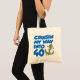 Cruising My Way Into 40 funny tote bag. A great gift bag for anyone celebrating their 40th birthday on a cruise, ship, boat, yacht or near the ocean. Are you planning a cruise vacation for your fortieth birthday? It features a cartoon anchor.