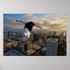 A skateboarder is frozen mid-trick 37 stories up above the San Diego downtown. He's crushing it.