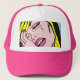This Cry Me a River Pop Art Trucker Hat features a comic book inspired drawing of emotionally distraught young woman with blonde hair, pink lips and aqua tears. The woman is on an aqua and white polka dot background. Life may not be fair, but this hat almost makes up for it! It's perfect for any drama queen!