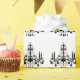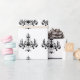 Fancy crystal chandeliers decorate this wrapping paper in a classic black and white colour scheme, making it perfect for a wedding or any other special occasion.