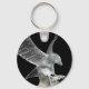 A round key chain with a picture of a beautiful, elegant, and exceptionally detailed crystal eagle flaring its wings.