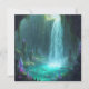 A glowing waterfall cascades into a turquoise pool, surrounded by vibrant crystals and lush moss.
