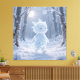 A luminous snowman made entirely of iridescent crystal scales and delicate snowflakes pads silently through a moonlit winter forest. The icy creature glows softly against the fresh snow, each step scattering tiny flakes of light as the full moon hangs in the misty sky. Enchanted, serene, and otherworldly, this artwork captures the quiet magic of a frozen night where myth and nature blend together.
