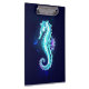Sparkling, crystal, icy, polygonal, seahorse on dark blue background.