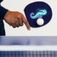Sparkling, crystal, icy, polygonal, seahorse on dark blue background.
