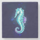 Crystal Ice Seahorse on Blue Background Stone Coaster