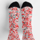 These socks feature a vibrant, abstract design chraacterised by a playful mix of red, white, and teal hues. The pattern consists of small, irregular shapes that create a lively and dynamic visual effect, reminiscent of confetti or splashes of paint. This eye-catching design is perfect for adding a pop of colour to any outfit, making these socks an ideal choice for those who want to express their unique style while keeping comfortable. Whether worn casually or as a statement piece, these socks are sure to stand out and brighten up your day!