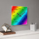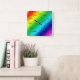A colourful image of a diagonally striped, rainbow pattern overlaid with tiny prisms, to give it a crystalised, stained glass look.