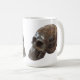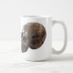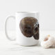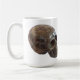 A coffee mug with the image of a petrified wood crystal carved skull