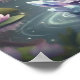 This whimsical poster features a meditating frog perched on a glowing crystal lily pad in a misty enchanted forest pond, surrounded by lotus blooms, soft light, and sparkles.