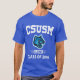 A CSUSM T-shirt is a casual, comfortable shirt representing California State University San Marcos (CSUSM). It typically features the university's name, logo, or mascot in various designs and colours. Most CSUSM T-shirts are made from cotton or a cotton-blend, offering a soft feel and breatheable fit.