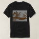 I give wanted to give this a 4 instead of a 5 because these Basic DARK T0shirts run unexpectedly SLIM or Narrow. Which is great if you do not have a potbelly, but I have a paunch. It isn't the shirt's fault that I've got a beer belly. The design and shirt itself is a quality cotton shirt. The color is more of a deep purple, but still a very pretty color. The Basic DARK T-shirts run a bit SLIMMER than the Basic Ts. The neck is a fraction narrower (or seems to be narrower) also. I'm a paunchy middle-aged woman and my neck is 12 inches (31cm) thick and the neckline fell about the same as in the photo of the man, and I had the desire to tug it a bit. So if you're a thick necked man or like loose shirts, be aware these are slimmer shirts. Once I get rid of my lockdown paunch it'll look great. The shirt washed well in cold water with no apparent bleeding. We don't have a dryer, so it hung dry. Did not shrink. Love the colors and the design. The design looks smaller on my shirt than it does on the model on-line. But still, it looks good on the shirt. The printing looks as it does on the model, just the size seems fractionally smaller. Washed garment in cold water, hung dry and design appeared unaffected.
