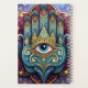 An artistic and detailed representation of the hand of Fatima, a powerful symbol of protection and good fortune, adorned with intricate designs and an all-seeing celestial eye.