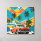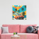 Cuba Canvas Print 2024. A bold design inspired by the vibrant culture and aesthetics of Cuba. The background features a lively colour palette of tropical hues, such as bright turquoise, sunny yellow, and vivid coral, reflecting the island’s rich landscapes and lively atmosphere. Stylised palm trees and vintage cars, iconic symbols of Cuban life, are depicted in playful silhouettes, enhancing the sense of movement and energy. This design captures the spirit of Cuba, inviting viewers to experience its warmth, vibrancy, and cultural richness.