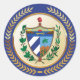 The national coat of arms of Cuba, is infused into the centre of a faux gold rimmed circle shape. Around this image, is a faux gold laurel wreath which completes the design.