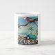Cuban vintage retro Travel print, Old Cuba auto car and parrot. Cuban holiday poster.