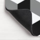 Optical illusion of shapes creating the pattern of cubes in black, white and grey.