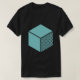 A T-shirt with a simple geometric cube with a half-tone shaded side. Like an illustration from an old math book.