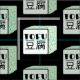 An illustration of a cube of tofu drawn in a light green colour. The Japanese text on the tofu reads tofu.