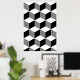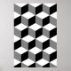 Optical illusion of shapes creating the pattern of cubes in black, white and grey.