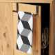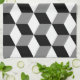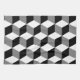 Optical illusion of shapes creating the pattern of cubes in black, white and grey.