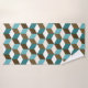 Cube Pattern Teals Brown Cream & White Bath Towel