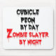 This funny text design features the phrase "Cubicle Peon by Day Zombie Slayer by Night" and is perfect for any office cubicle peon who loves zombies.