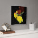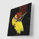 Yellow flowers on a black background with faded red cubes tailing away in the distance