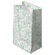 Green and white repeat patterned cucumber gift bag. Original line art botanical drawing and design by Sarah Trett for www.mylittleeden.com