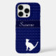Blue swirl pattern with a banner for you to personalise with your name. Curious kitty is waiting to see what you type. Cat lover phone case