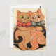 This gorgeous postcard for cat lovers features the work of famous English cat artist Louis Wain (1860 - 1939). The illustration shows two romantic brown and ginger coloured cats gazing lovingly into each other's eyes as they cuddle up to each other. The green eyed boy cat is wearing a red bow at his neck and the blue eyed girl cat has a grey bow. The postcard would be perfect for admirers of the work of Louis Wain and fans of vintage cat art.NB Please do not pin or reproduce without my permission.