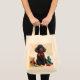 Carry a little bit of comfort and charm wherever you go with the Cuddly Black Poodle Chenille Tote Bag. This delightful tote features an adorable black poodle made from soft chenille fabric, perfectly capturing the fluffy texture of the poodle's coat. Wearing a stylish black bow, the poodle sits sweetly on the bag, surrounded by a playful assortment of colourful toys and a matching black leash. The intricate stitching adds depth and dimension, making this tote bag as visually appealing as it is functional. Whether you're running errands or heading out for a casual day, this bag brings a sense of warmth and comfort to your style.