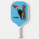 Cue funny Pileated woodpecker cartoon illustration Pickleball Paddle