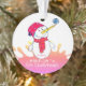 Cute Snowman Pink Baby`s First Christmas Ornament. Cute smiling snowman with a snowflake on his nose. The background is a pink colour splash with white snowflakes. Easy personalise with your name and year of birth.