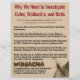 This flyer/handout would be perfect for students, scientists, entomologists, ornithologists, virologists, ecologists, and others who are researching the Zika virus. It would also remind politicians, public health departments, and our public health authorities to heed the advice of the scientific community regarding the Zika virus.
