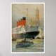 Vintage Ocean Liner illustration of Cunard's premeir 4-stack ocean liner Aquitainia sailing up the Hudson River to dock in the Early 20th Century.