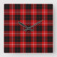 Cunningham Tartan Red Black Plaid Square Wall Clock