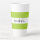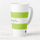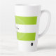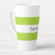 Lime green and white striped coffee mug with your name in black and initial in grey. Design HAMbyWhiteGlove aka HAMbWG