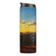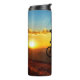 Personalised water bottle with bicycle rider graphic and a sunset background. Add your person's name at the prompt! From HAMbyWhiteGlove aka HAMbWG