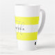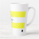Yellow and white striped coffee mug with your name in black and initial in grey. Design HAMbyWhiteGlove aka HAMbWG