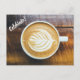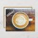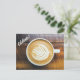 Cup of Coffee Latte with Leaf-Shape Foam on Wood Invitation Postcard