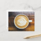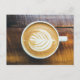 Cup of Coffee Latte with Leaf-Shape Foam on Wood Postcard