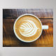 Cup of Coffee Latte with Leaf-Shape Foam on Wood Poster
