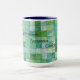 Various hues of green in a faux tile pattern. Gift, Righteousness, Acceptance, Confidence, and Eternal Life-in an acrostic or backronym that reveals the word GRACE. This is a two-toned cup. Beautiful gift for any Christian.