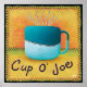 This vibrant coffee design showcases a two-tone teal mug against a striking gold and orange background, accented by a bold black and red diamond border. . Qzik Art