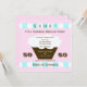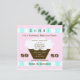 This modern 50th Surprise Birthday Party Invitation features a cupcake with a pink background with aqua and white accents. A really fun invitation for a 50th surprise birthday party. Copyright henishouseofpaper