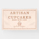 Artisan cupcake bakery banner, featuring delicate line art baking utensils including a whisk, piping bag, and spoon framed within an elegant dotted border. Fine line illustration set against a soft peach blush background creates a refined handmade bakery aesthetic. Designed for cupcake bakers, pastry chefs, dessert caterers, and home baking businesses, these labels are ideal for sealing cupcake boxes, pastry packaging, bakery gift boxes, and treat containers. A charming finishing touch for artisan bakeries, farmers market bakers, pop up pastry shops, and dessert brands that want their signage to feel polished, welcoming, and handcrafted.