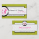 Promote your cafe cupcake bakery business with this cute, whimsical lime green, pink, black and white cute, whimsical monogram dots and cupcake business card. This business card features a bright dots background with a circle frame with a monogram letter inside. The design has layered rectangles displaying your business information. On the back is a cute cupcake displayed in a circular frame. This bold, modern, and stylish business card is also a great match for caterers, cafes, bakeries, cupcake businesses, party planners, bakers, chefs, business providing baked goods to retailers, wedding planners, interior designers, fashion designers, spas, salons, nail technicians, manicurists, estheticians, beauticians, retail clothing stores, jewellery stores, and more. ©2011 Pam's Designs.