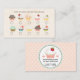 A sweet way to reward your most loyal customers! Mark each customer's visit to your bakery, and after ten purchases, reward them with a free cupcake or pastry. Yummy and pretty bakery loyalty cards with different strawberry, chocolate and vanilla cupcakes with sprinkles, flower shaped icing, and strawberries on a parchment look background. The pastel colours add to the sweetness of the this rewards card. Customise the front and back of the card with your own wording. Perfect for the pastry chef, bakery owner or anyone starting to sell their own baked goods. Artwork © Chrissy H. Studios, LLC. All rights reserved.