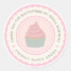 Cupcake baking business sticker. Pink frosting with sprinkles of stars and dots on top.